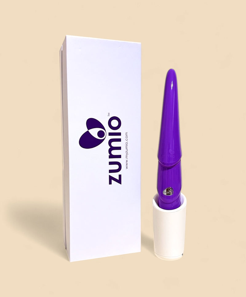 The idea for Zumio was born out of frustration when a very busy single mother with young children wanted a way to achieve orgasm in under a minute. She wanted deep stimulation and precise control, but all the toys she tried—mostly designed by men—were limited to the clitoral button, used irritating vibration, or were too big to pinpoint specific sensory areas.
